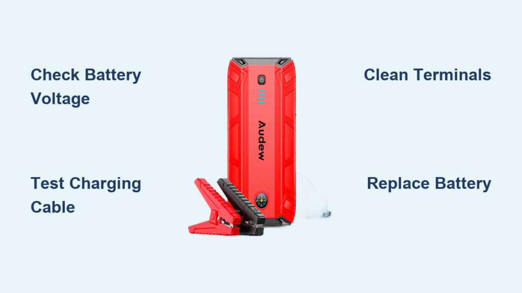 That moment when your Audew jump starter fails to power up as you’re stranded with a dead car battery is