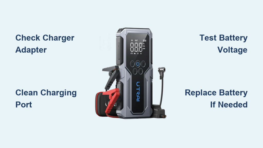 Your UTRAI jump starter sits useless on the garage shelf while your car battery struggles to turn over. This frustrating