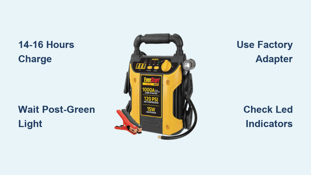 Your EverStart Maxx 800A jump starter sits uselessly in your trunk when its battery runs low—but proper charging keeps it