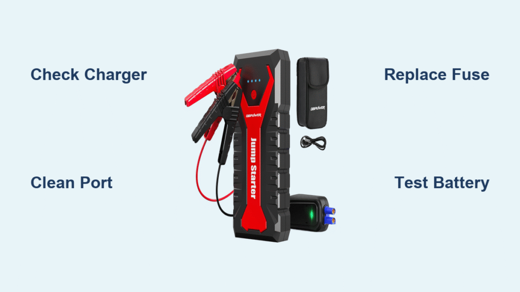 Your DBPOWER jump starter sits useless in the trunk while your car battery emits that familiar click-click-click. You press the