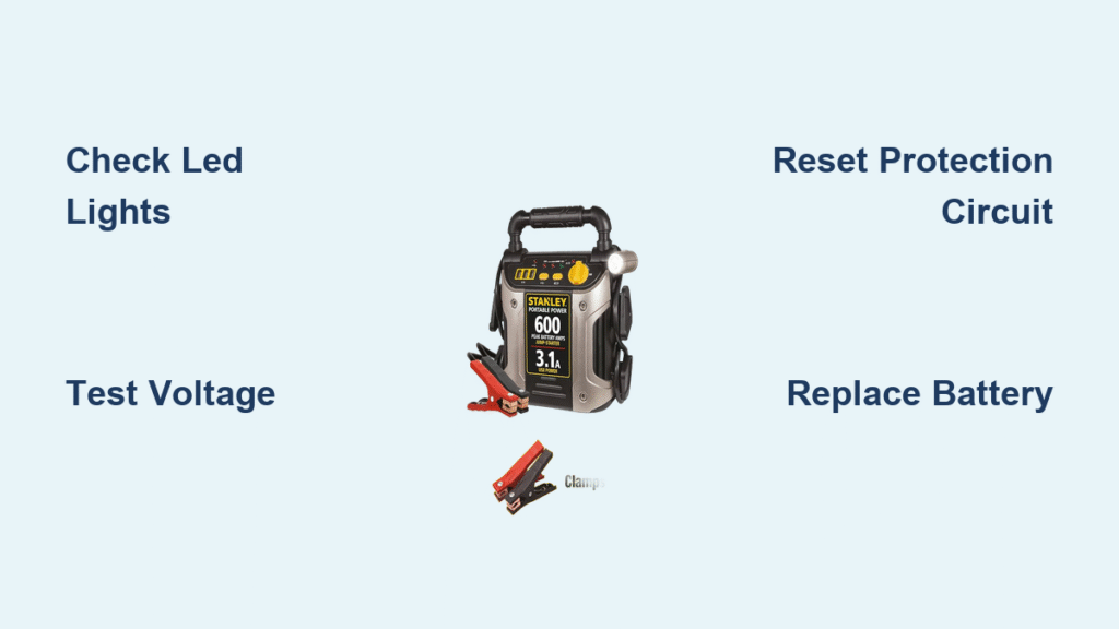 Your Stanley 500 Amp Jump Starter sits dead on the workbench—no charging lights, no engine crank, complete silence when you