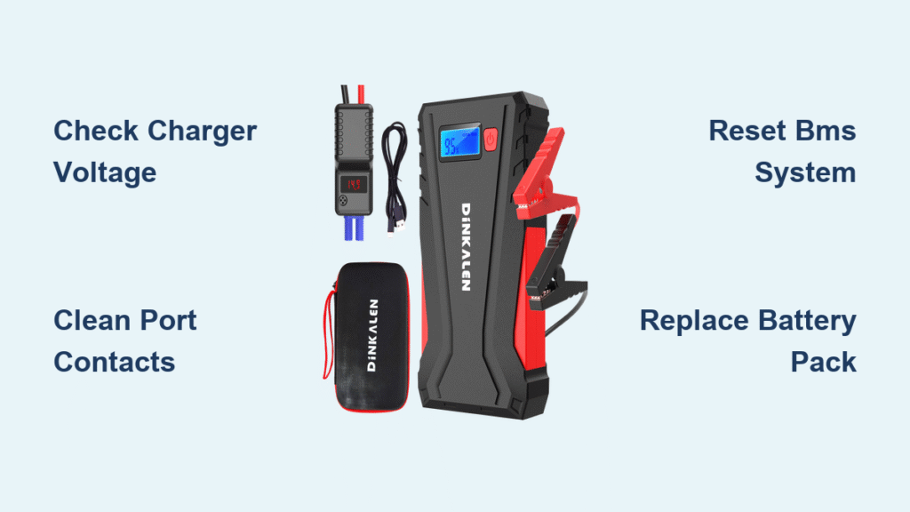 Your Dinkalen jump starter sits lifeless in the trunk, refusing to charge when you need it most. That sinking feeling hits when you’re stranded in a freezing parking lot or preparing for a winter road trip—your emergency power source won’t accept a charge. This isn’t just inconvenient; it leaves you dangerously vulnerable when your car battery dies. Don’t panic. Over 92% of “Dinkalen jump starter not charging” cases stem from five fixable issues we’ll diagnose today using basic tools. You’ll learn exactly why your unit won’t take a charge and how to restore it in under 30 minutes—no advanced skills required.