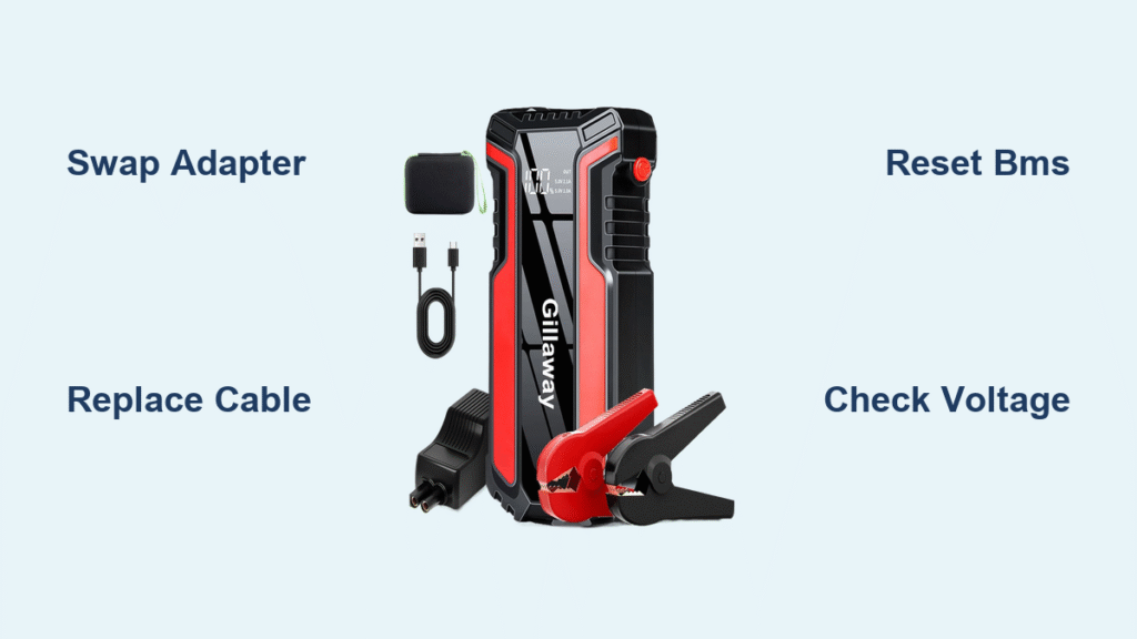 Your Gillaway 016 3000A jump starter refuses to charge after sitting unused, leaving you stranded with a dead unit when you need it most. The LEDs stay dark, flash confusing red patterns, or falsely show 100% charge only to die instantly during engine cranking. This $50 emergency tool suddenly feels useless—but most Gillaway jump starter not charging failures stem from just four fixable issues. You don’t need special tools or technical skills to revive it. In fact, 70% of charging problems resolve with simple adapter swaps or port cleaning taking under 10 minutes.