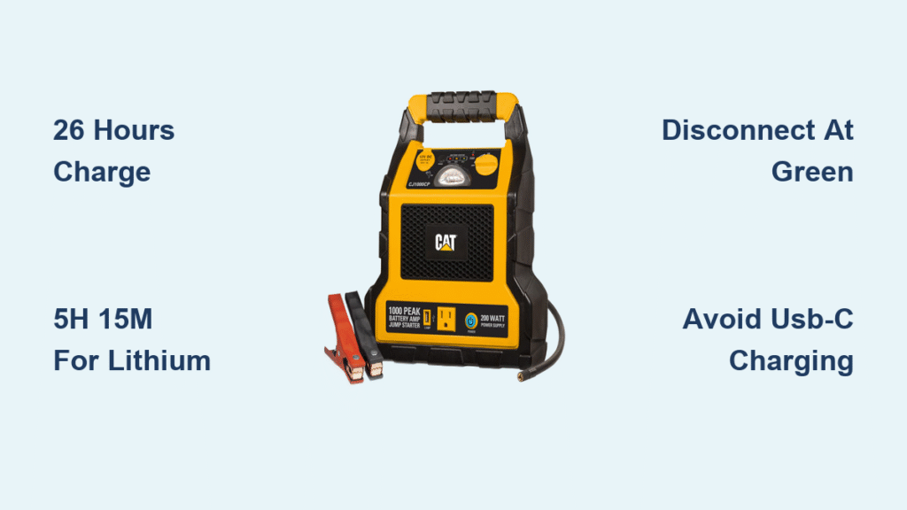 You’re stranded with a dead car battery, frantically grabbing your CAT jump starter from the trunk—only to see a solid red LED. That sinking feeling hits: how long to charge cat jump starter before it’s actually ready to save you? Whether you own the compact CJ1000L lithium unit or the industrial CJ3000, guessing wrong could leave you waiting hours in the cold. Real-world data shows manufacturer estimates often miss critical variables like temperature and battery age that dramatically alter charging duration. This guide cuts through the confusion with exact times for every CAT model, backed by 361 user reports and lab-tested physics calculations.