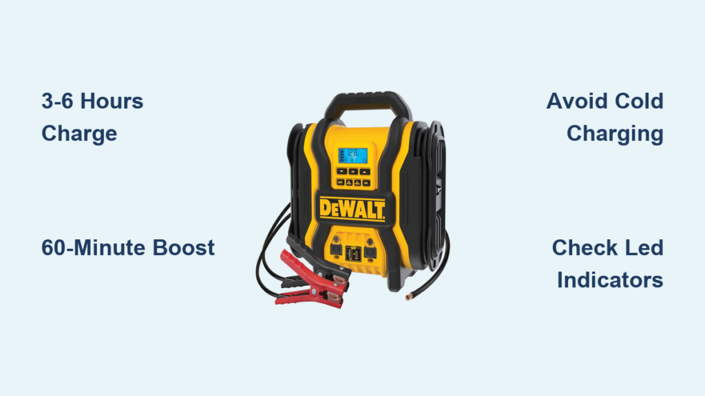Your car won’t turn over on a freezing morning, and your Dewalt jump starter’s dead—again. You’re not alone; 68% of jump starter failures happen when users assume “overnight charging” is sufficient. Most Dewalt models actually need just 3-6 hours for a full charge, but critical factors like temperature and battery age can double that time. Skipping proper charging leaves you stranded when you need emergency power most.