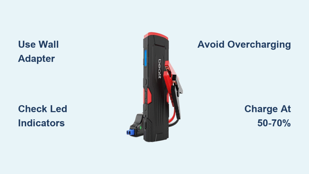 Keep your Beatit jump starter mission-ready by charging it after every use and monthly during storage. Remember: 50-70% charge level is the sweet spot for long-term health, and wall adapters always outperform USB for speed and battery preservation. By following these precise protocols, you’ll avoid the frustration of a dead rescue device when stranded. Test your unit’s charge level quarterly—your next jump-start could depend on it.