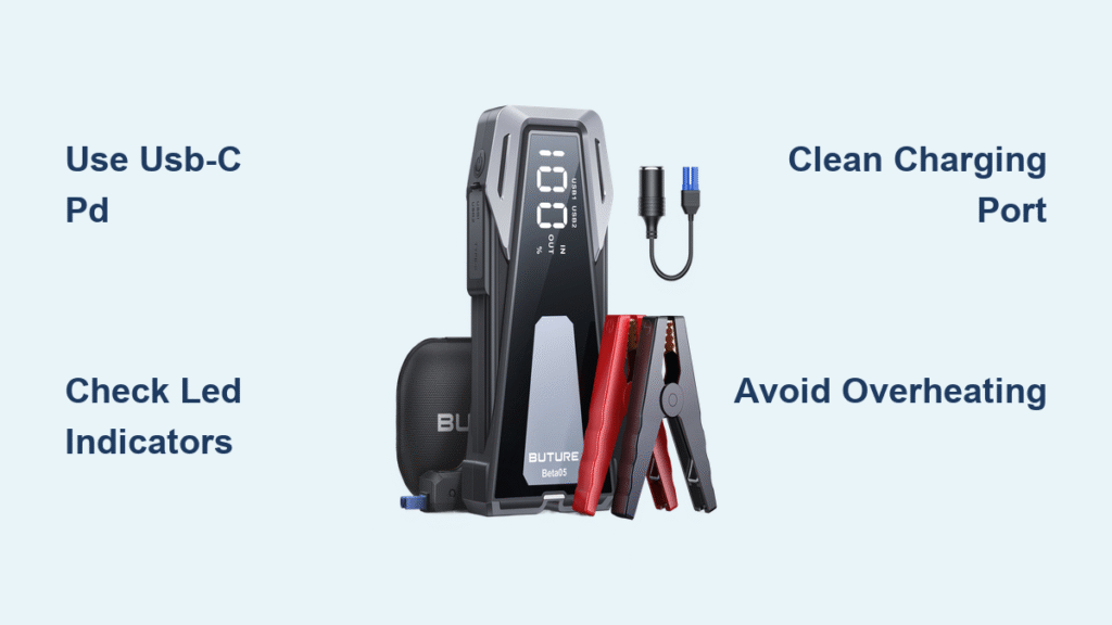 Your car battery dies on a rainy Tuesday morning. You rush to your Buture jump starter, only to find the display completely dark. This frustrating scenario happens to 1 in 3 drivers who neglect proper charging maintenance. Knowing exactly how to charge Buture jump starter devices transforms this emergency tool from a paperweight into a lifesaver. This guide reveals the precise USB-C PD, Micro-USB, and car charging methods based on Buture’s engineering specifications – plus critical troubleshooting steps to prevent charging failures when you need power most.