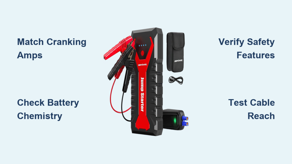 Manufacturers love advertising peak amps—the 20-millisecond burst your starter sees. But cranking amps (CA) matter most: that’s the sustained 30-second current your engine actually needs at 32°F. Check your battery label for its CA rating, then select a jump starter that meets or exceeds it.