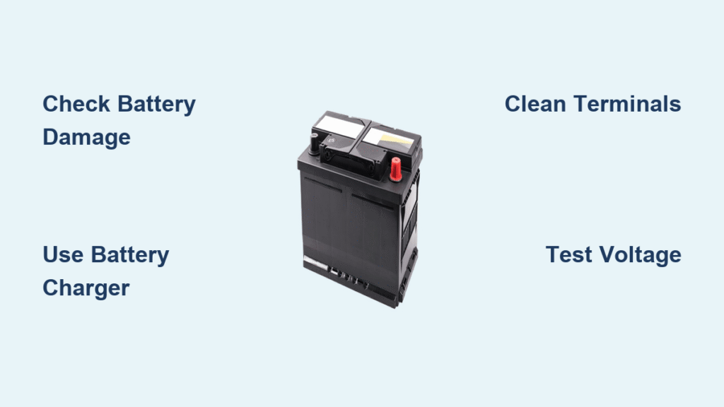 Never skip this critical safety step. Inspect your battery for visible damage like bulging sides, cracks in the plastic casing, or white crusty buildup around terminals. Acid leaks appear as wet spots or greenish corrosion near the base. If you spot any damage, stop immediately—your battery needs replacement, not revival. Attempting solo methods on a compromised battery risks dangerous acid exposure or explosion. When in doubt, call professional roadside assistance.