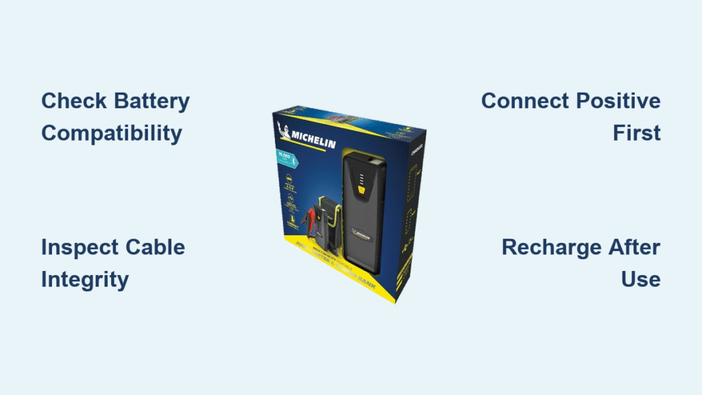 Your Michelin jump starter works exclusively with 12-volt lead-acid batteries found in most passenger vehicles. Check your battery case for voltage markings—6-volt batteries (common in older motorcycles and golf carts) or 24-volt systems (in commercial trucks) won’t work with standard Michelin units. The device automatically detects battery voltage during connection, but verifying compatibility beforehand prevents confusing error codes during critical moments.