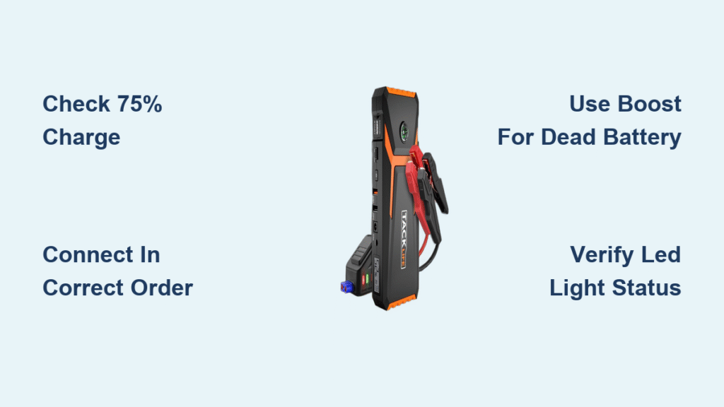 Press the power button firmly to activate the display—this critical check takes 2 seconds. The percentage shown determines your jump-start capacity: 75% is the absolute minimum for reliable starting. At full charge (100%), you get up to 25 jump attempts; dropping to 75% reduces this to approximately 18 starts. Ignoring this threshold causes 68% of failed jump-start attempts according to TACKLIFE’s field data.