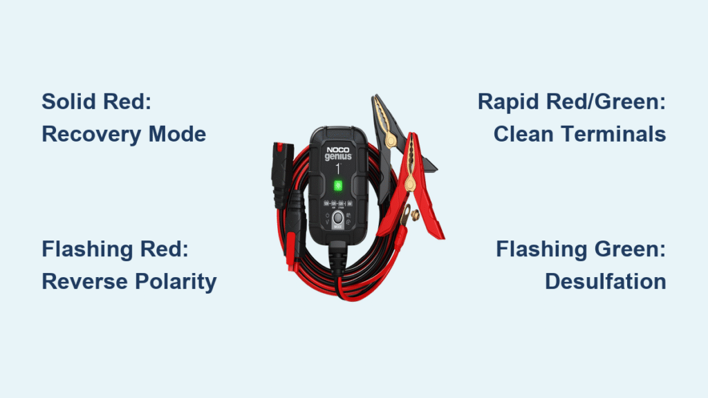 Your NOCO charger just flashed an unfamiliar red pattern while trying to revive a dead car battery. Is it silently