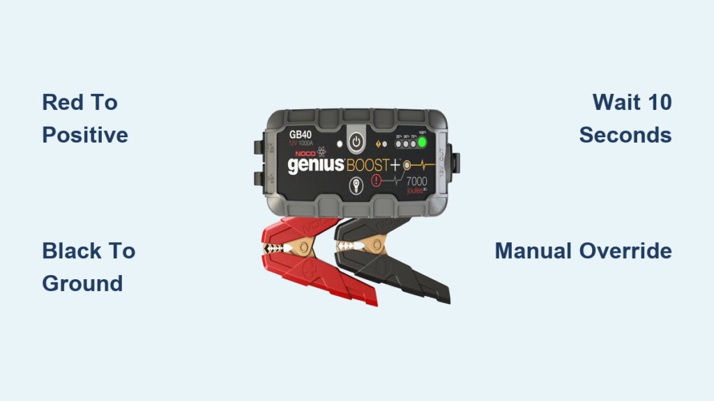 Stranded at midnight with a dead battery as rain starts pouring? Your NOCO Boost GB40 sits in the trunk—a pocket-sized